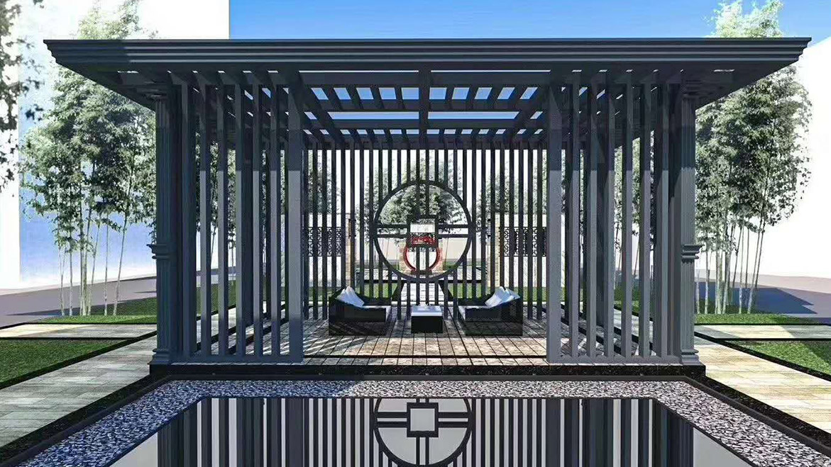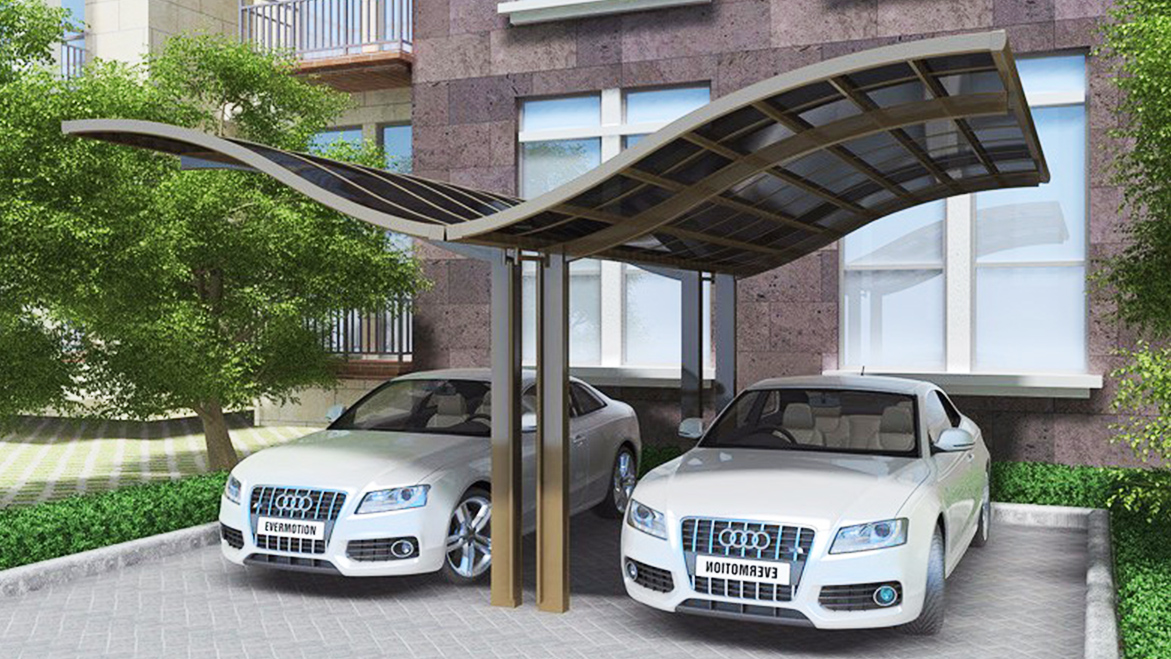 +富豪灰方管曲臂篷